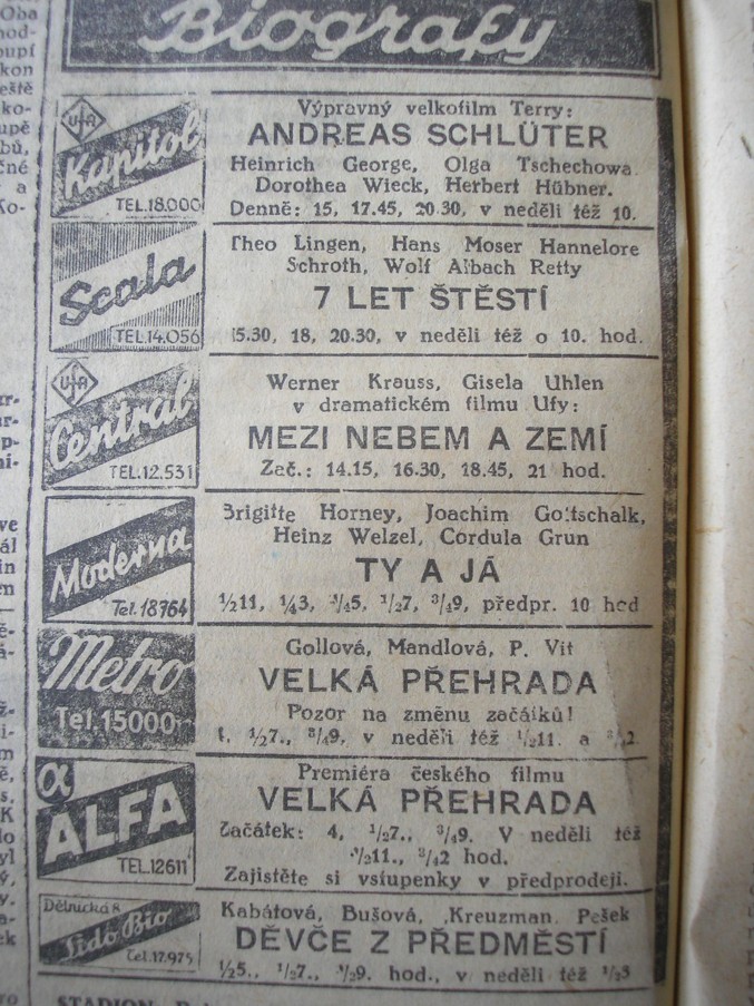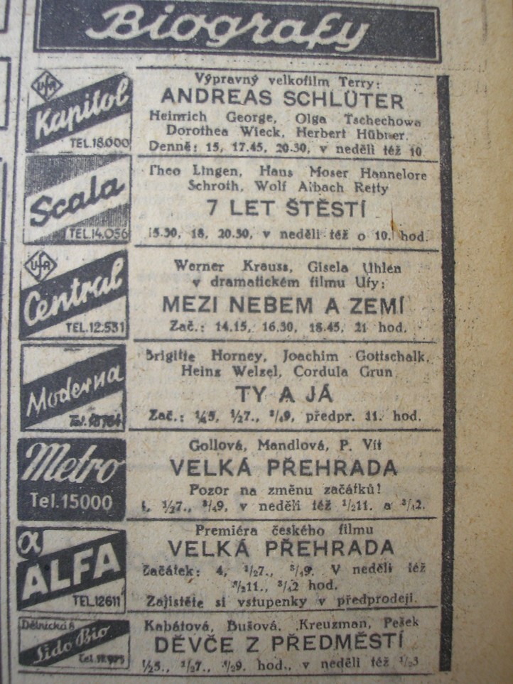 | Cinema | Moravské slovo | 1942-11-14 | 271 | 100 |