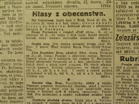 | Programme Description (CZ) | Lidové noviny | 1919-01-21 | 21 | 100 |