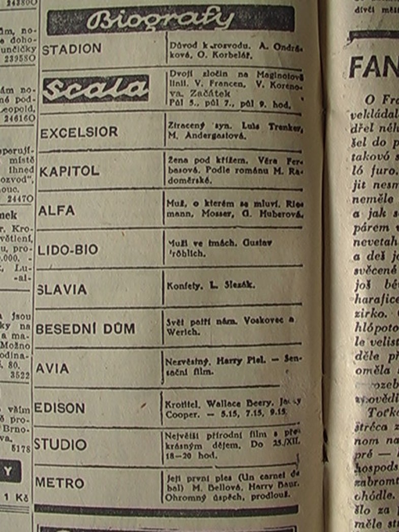 Nadmíru zajímavý americký film o třech kapitolách: Za zdravím a krásou ženy. První kapitola od 3. - 6. srpna. K tomu Záhadný Jockey. Dvouhodinová představení, proto začátek změněn na 5., 7. a 9. hodinu. V neděli též o 3. hod. odpol.