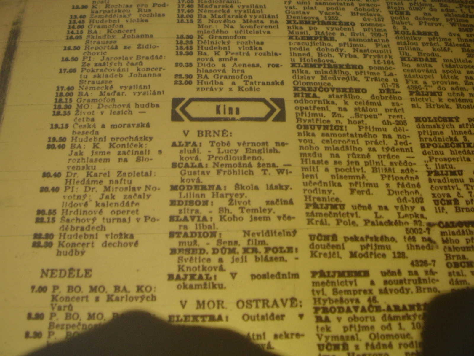 | Programme publishing date | 1936-04-09: Moravské noviny | 1936-04-09 | 84 | 100 |