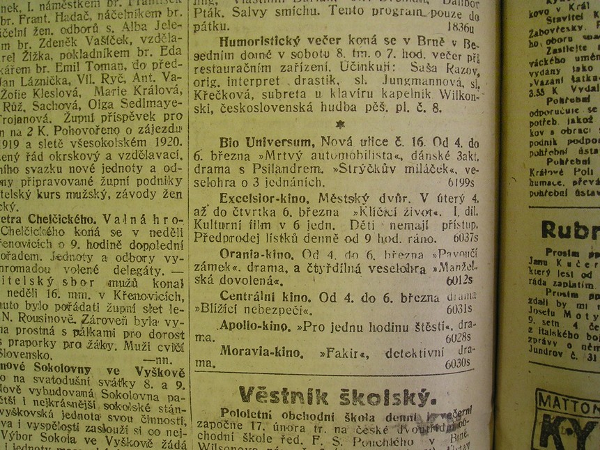 | Cinema | Lidové noviny | 1919-03-04 | 63 | 100 |
