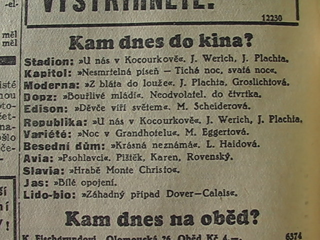 | Cinema | Moravské slovo | 1934-12-18 | 237 | 100 |