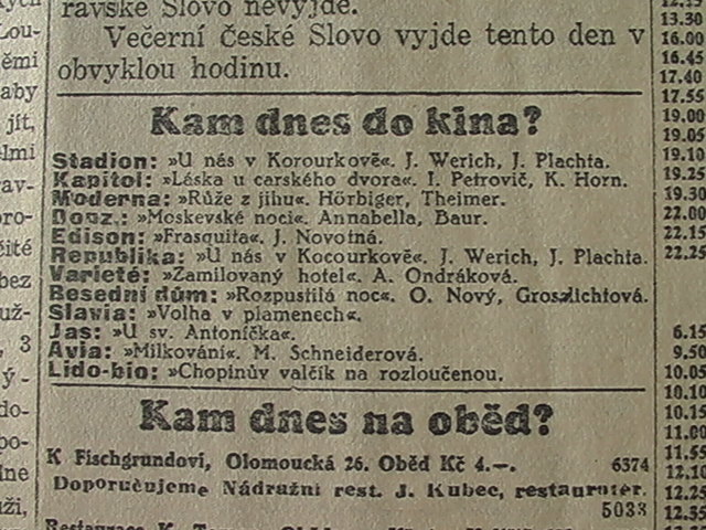 | Cinema | Moravské slovo | 1934-12-25 | 241 | 100 |
