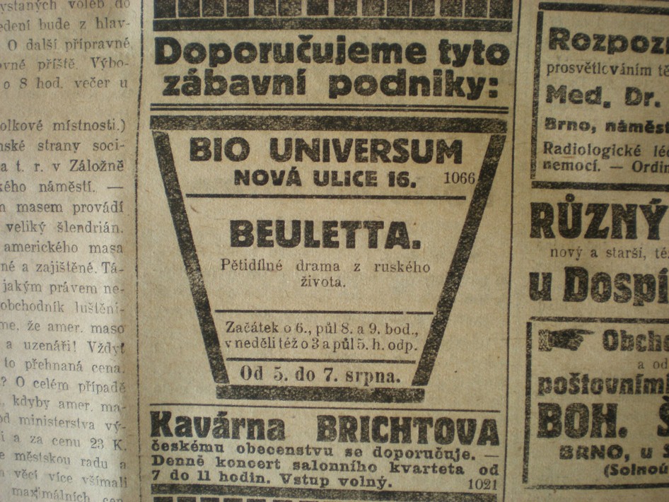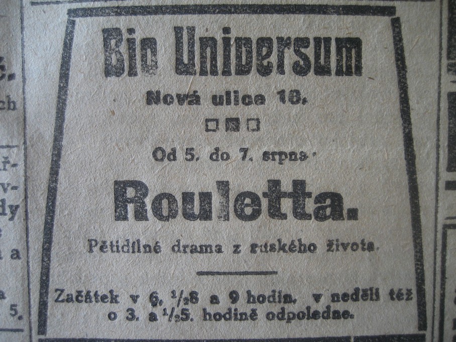 | Cinema | Rovnost | 1919-08-05 | 214 | 100 |