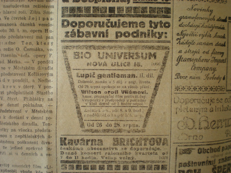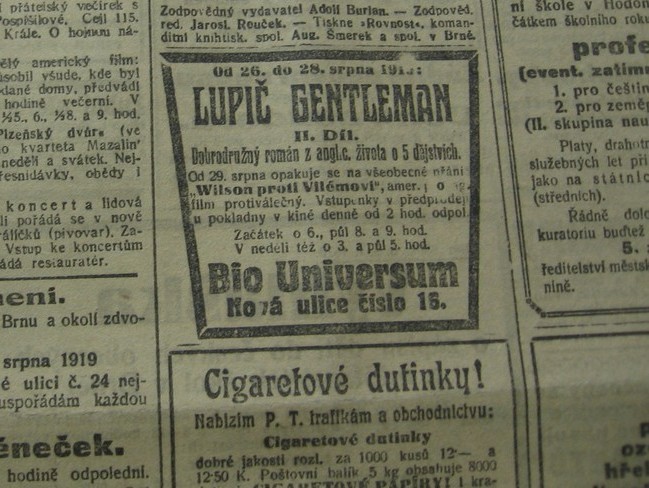| Cinema | Rovnost | 1919-08-26 | 235 | 100 |