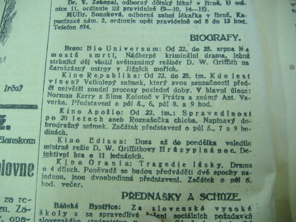 | Cinema | Lidové noviny | 1924-08-22 | 421 | 100 |