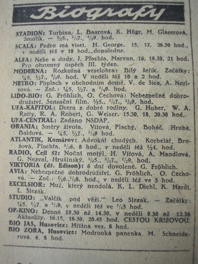 | Cinema | Moravské slovo | 1941-12-13 | 294 | 100 |