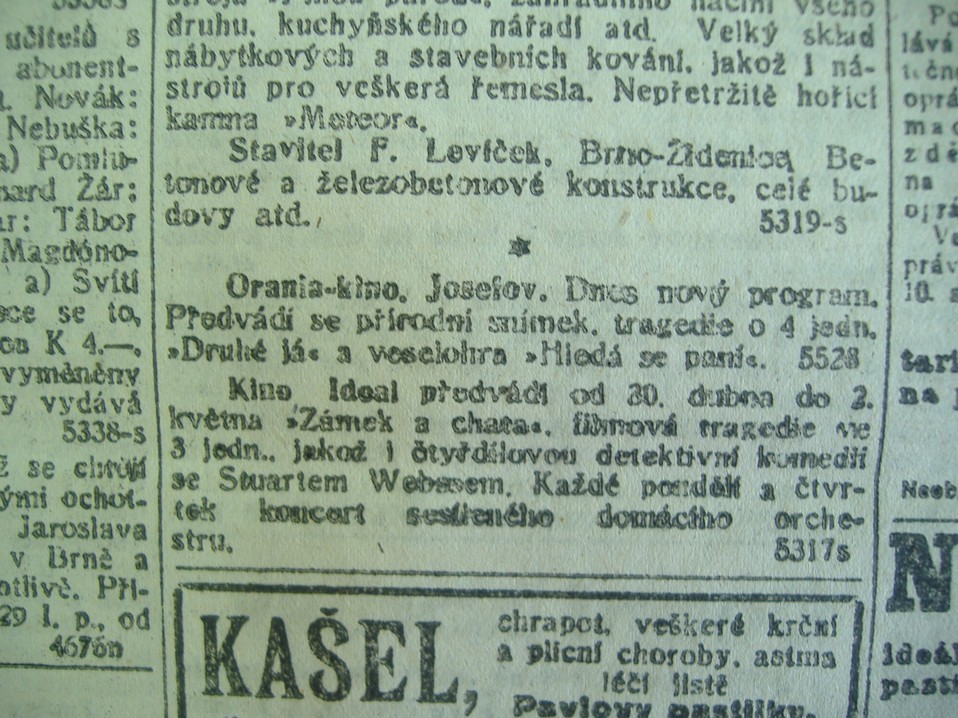 | Cinema | Lidové noviny | 1918-04-30 | 117 | 100 |