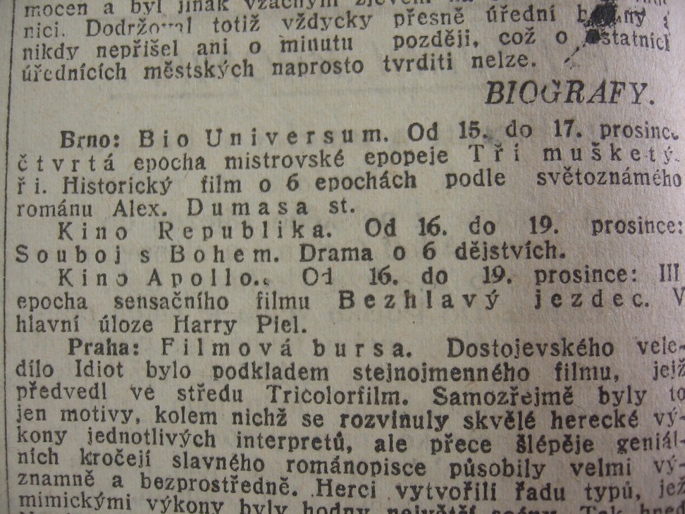 | Programme publishing date | 1921-12-17: Moravské noviny | 1921-12-17 | 288 | 100 |