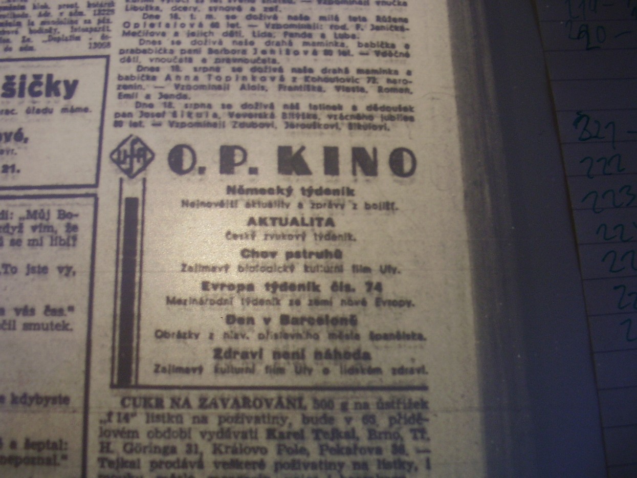 | Cinema | Moravské noviny | 1944-08-18 | 227 | 100 |