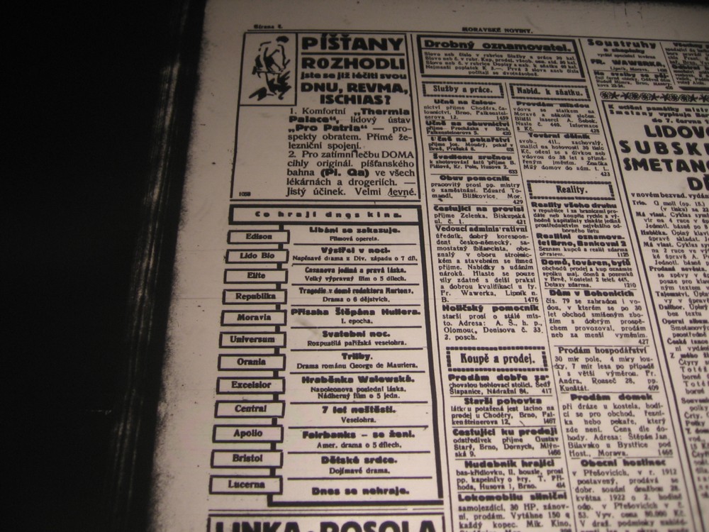 | Programme publishing date | 1922-05-20: Moravské noviny | 1922-05-20 | 114 | 100 |