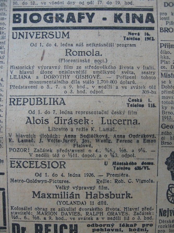| Cinema | Lidové noviny | 1926-01-02 | 3 | 100 |