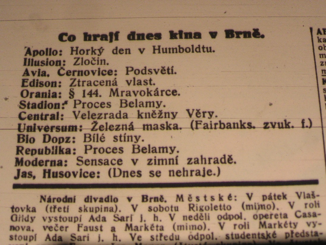 | Programme publishing date | Moravské noviny | 1930-01-11 | 7 | 100 |