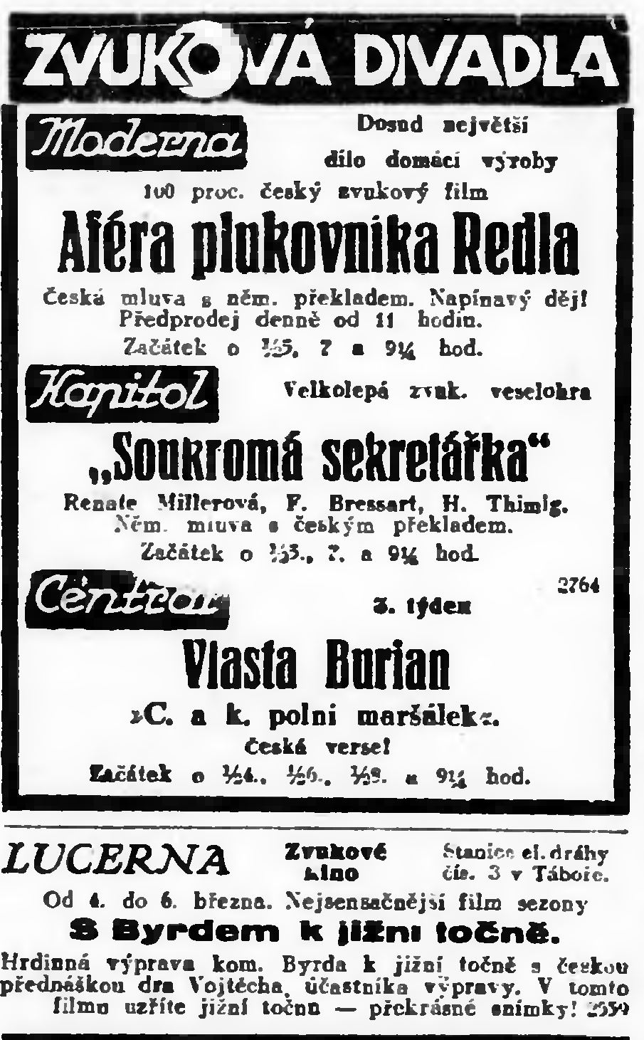| Cinema | Lidové noviny | 1931-03-04 | 115 | 100 |