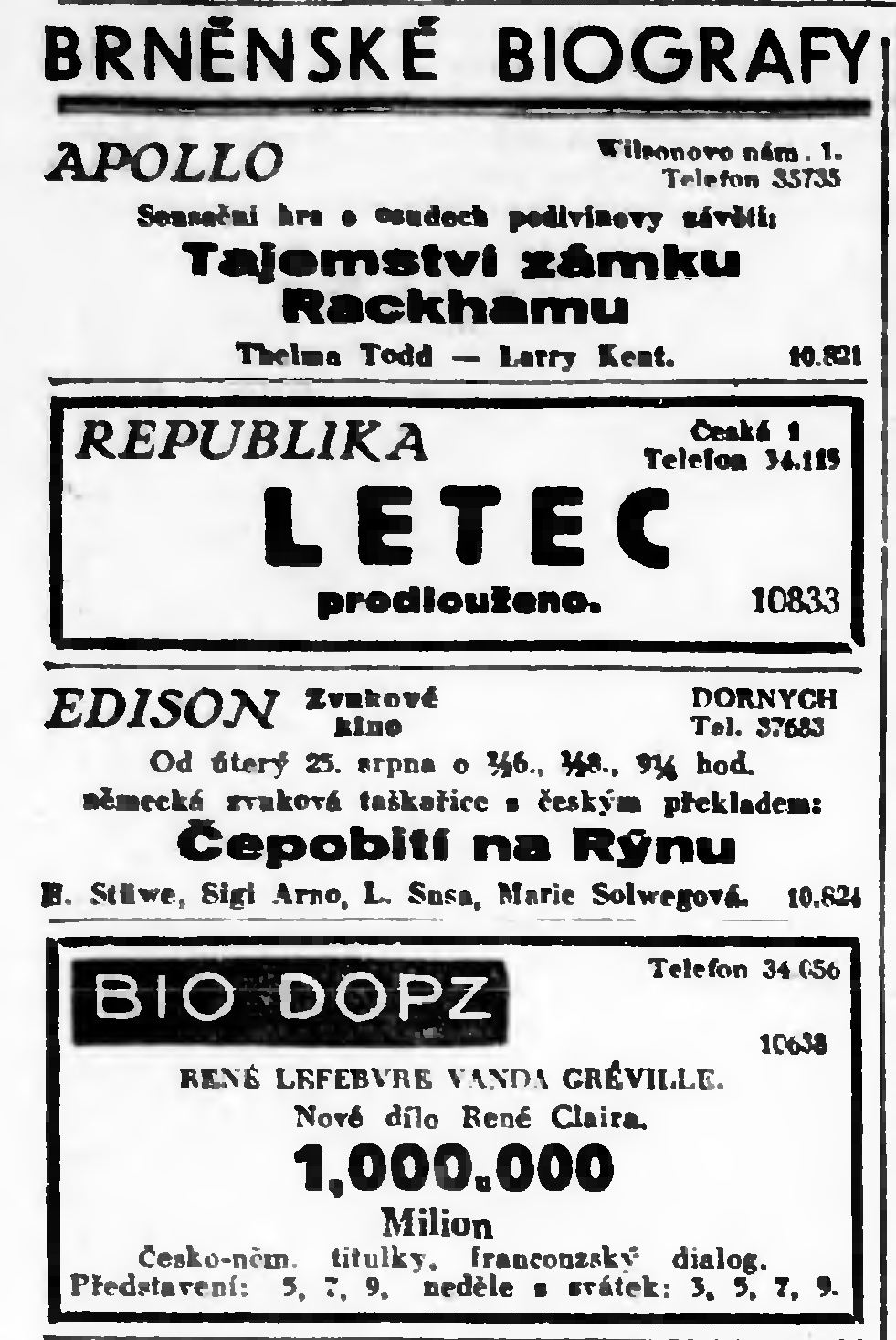 | Cinema | Lidové noviny | 1931-08-25 | 424 | 100 |