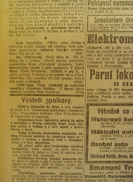 | Programme Description (CZ) | Lidové noviny | 1920-04-28 | 213 | 100 |