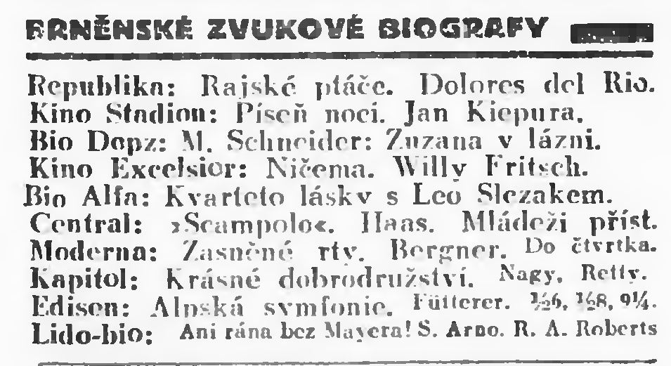 | Cinema | Lidové noviny | 1933-01-17 | 30 | 100 |
