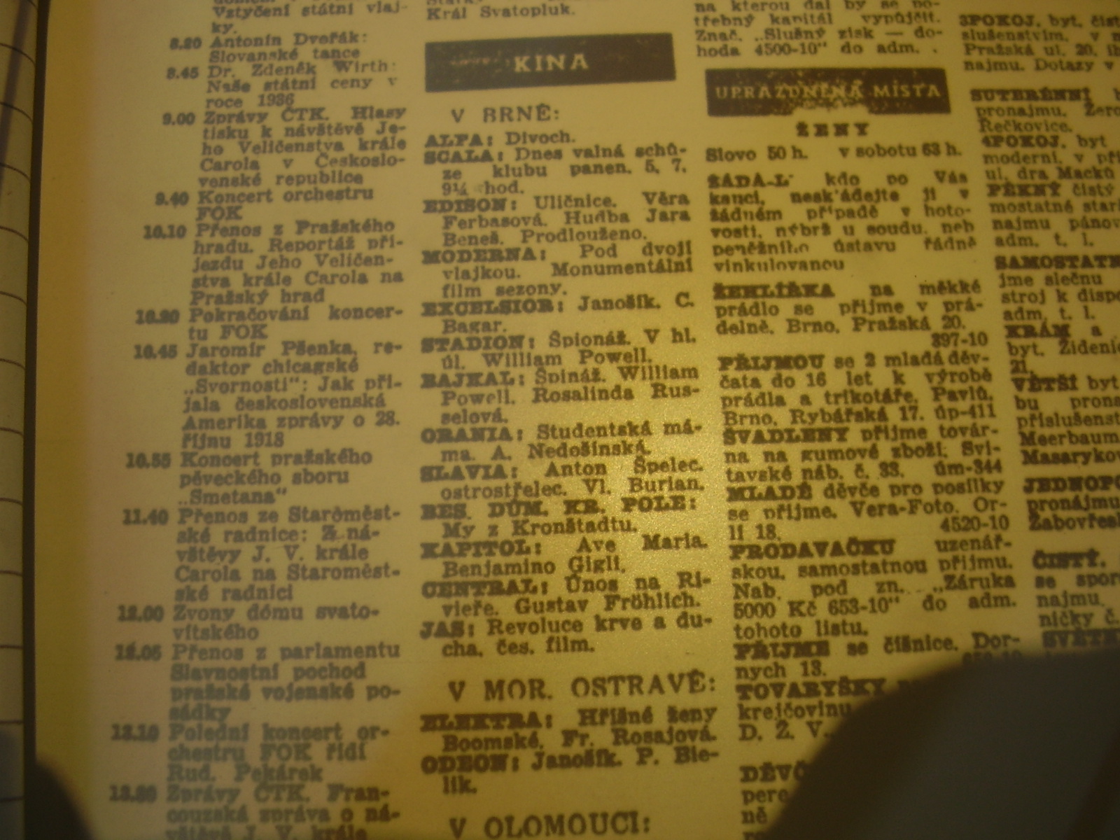 | Cinema | Moravské noviny | 1936-10-27 | 247 | 100 |
