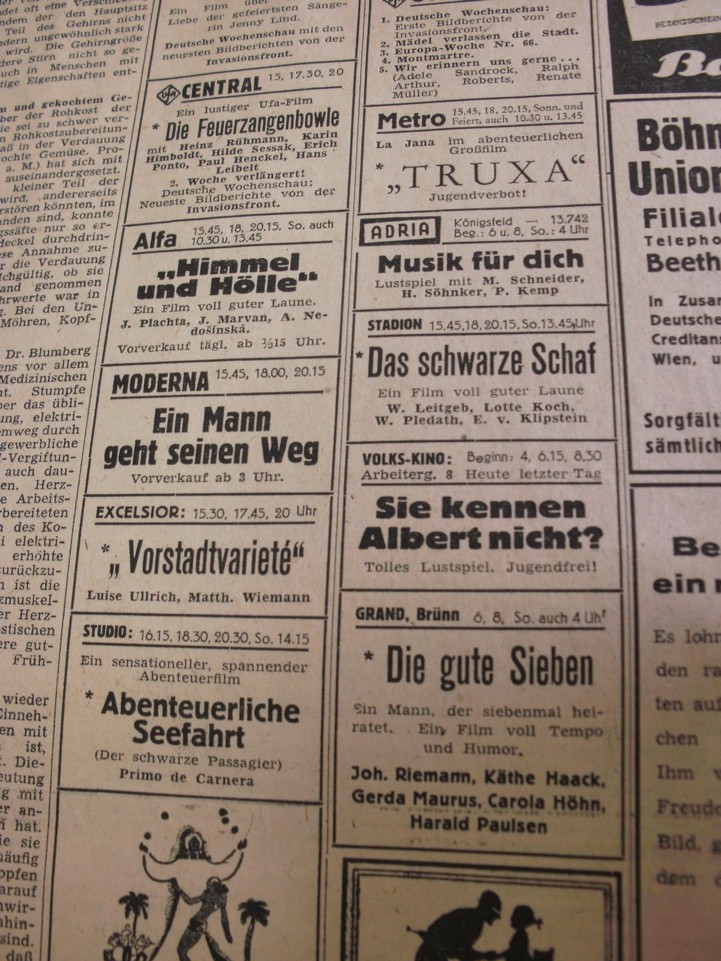 | Cinema | Brünner Abendblatt | 1944-07-04 | 100 | |