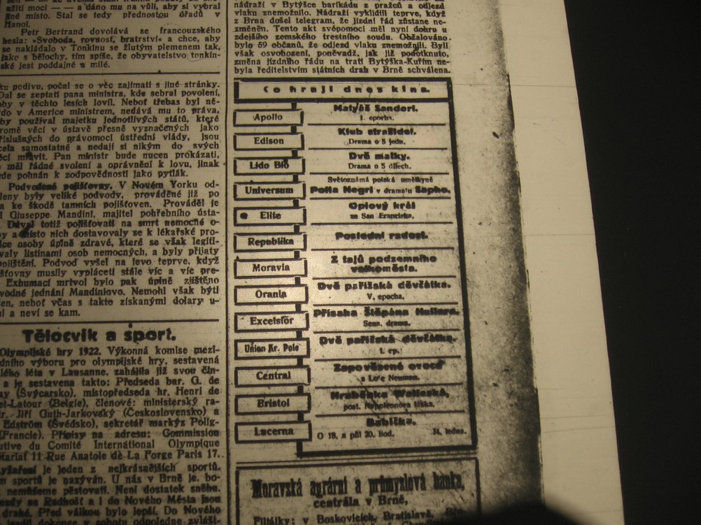 | Cinema | Moravské noviny | 1921-11-20 | 266 | 100 |