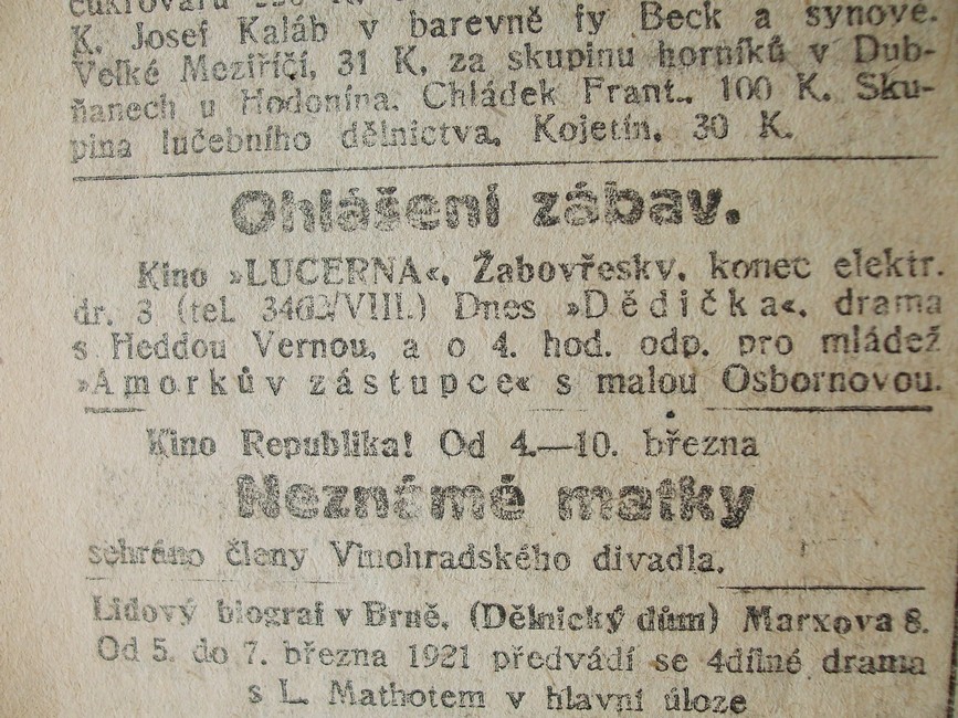 | Cinema | Rovnost | 1921-03-06 | 64 | 100 |