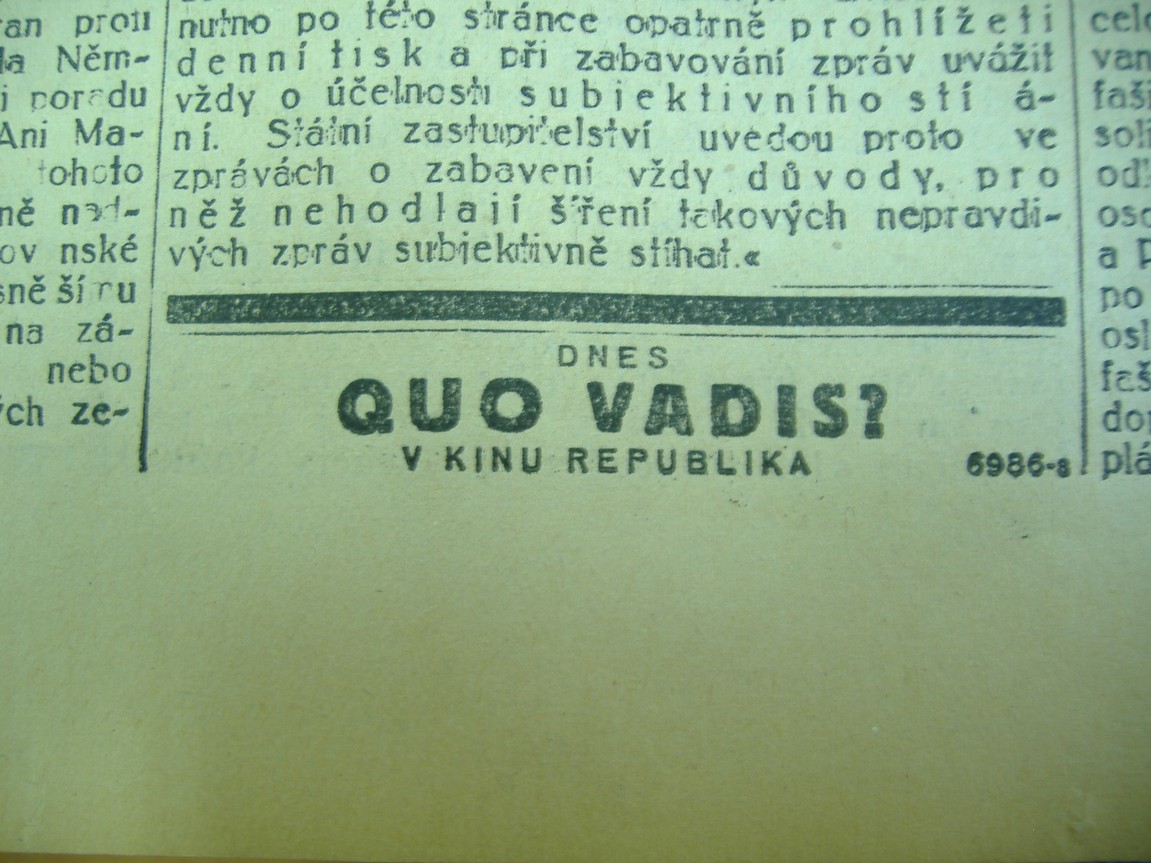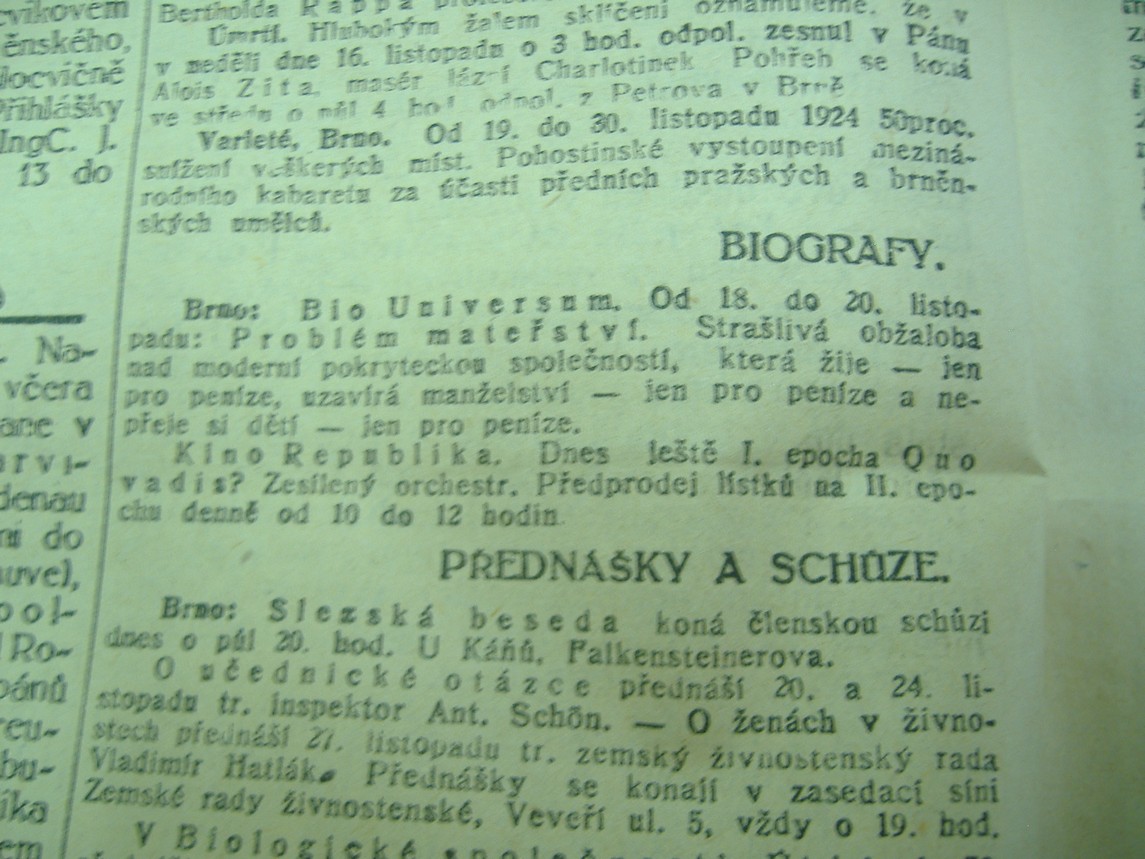 | Programme Description (CZ) | QUO VADIS? V KINU REPUBLIKA: Lidové noviny | 1924-11-14 | 571 | 100 |