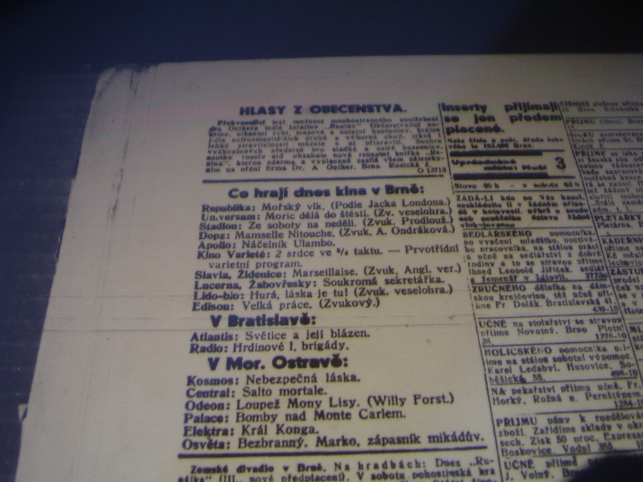 | Programme publishing date | 1931-10-09: Moravské noviny | 1931-10-09 | 233 | 100 |