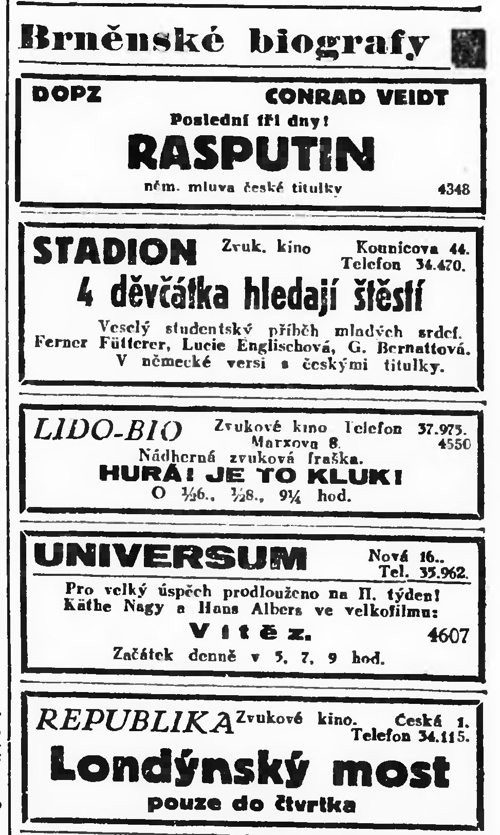 | Cinema | Moravské slovo | 1932-04-26 | 81 | 100 |