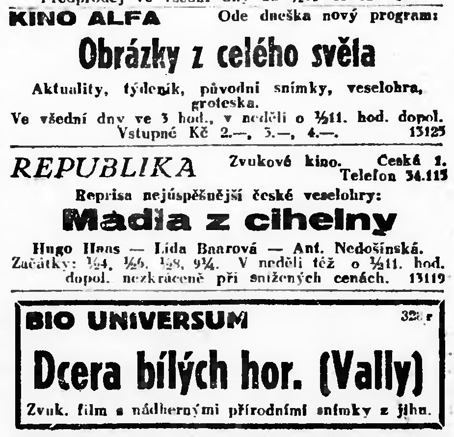 | Number of screenings | Lidové noviny | 1933-12-01 | 603 | 100 |