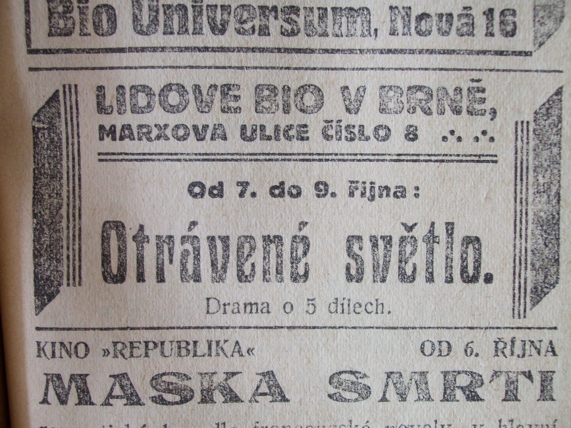 | Cinema | Rovnost | 1922-10-07 | 277 | 100 |
