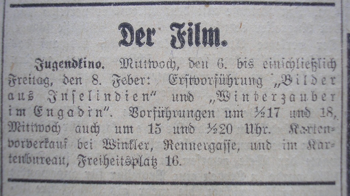 | Number of screenings | Volksfreund | 1929-02-05 | 31 | 100 |