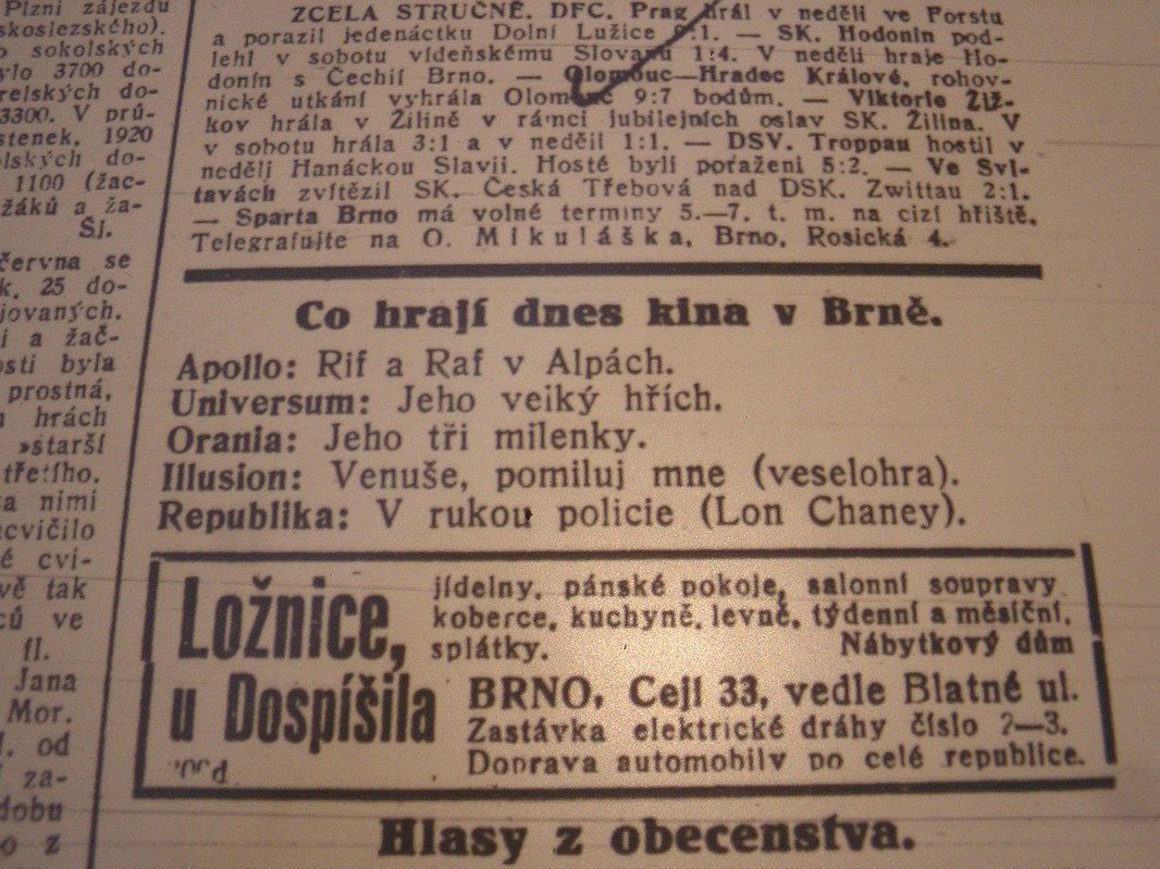 | Cinema | Moravské noviny | 1929-07-03 | 150 | 100 |