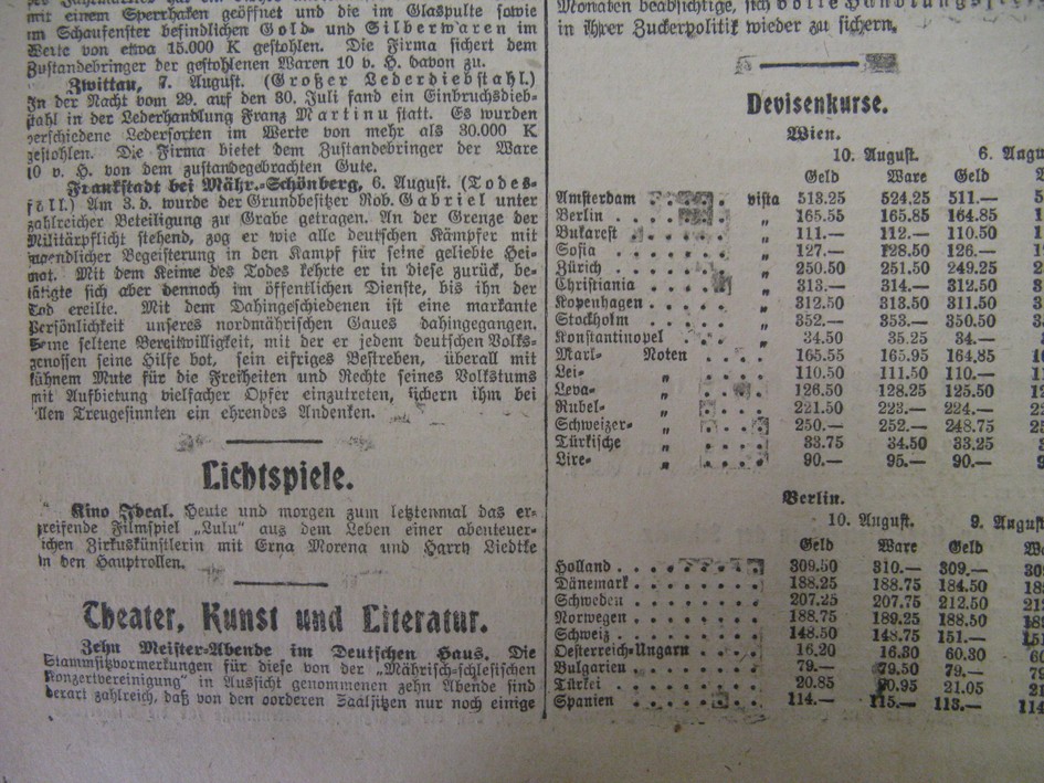 | Numbers | Tagesbote aus Mähren und Schlesien | 1918-08-09 | 368 | 100 |
