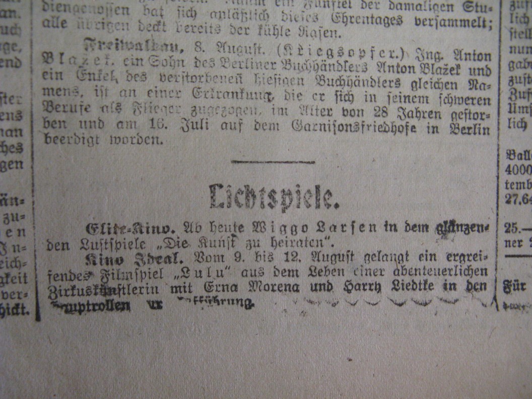 | Programme publishing date | 1918-08-09: Tagesbote aus Mähren und Schlesien | 1918-08-09 | 368 | 100 |