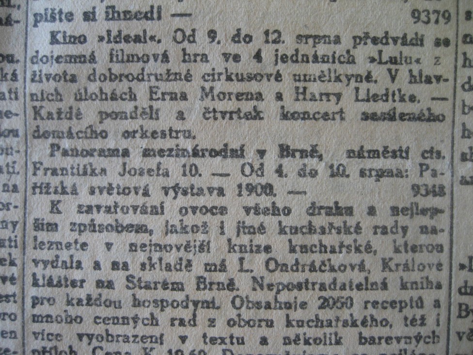 | Cinema | Tagesbote aus Mähren und Schlesien | 1918-08-09 | 368 | 100 |