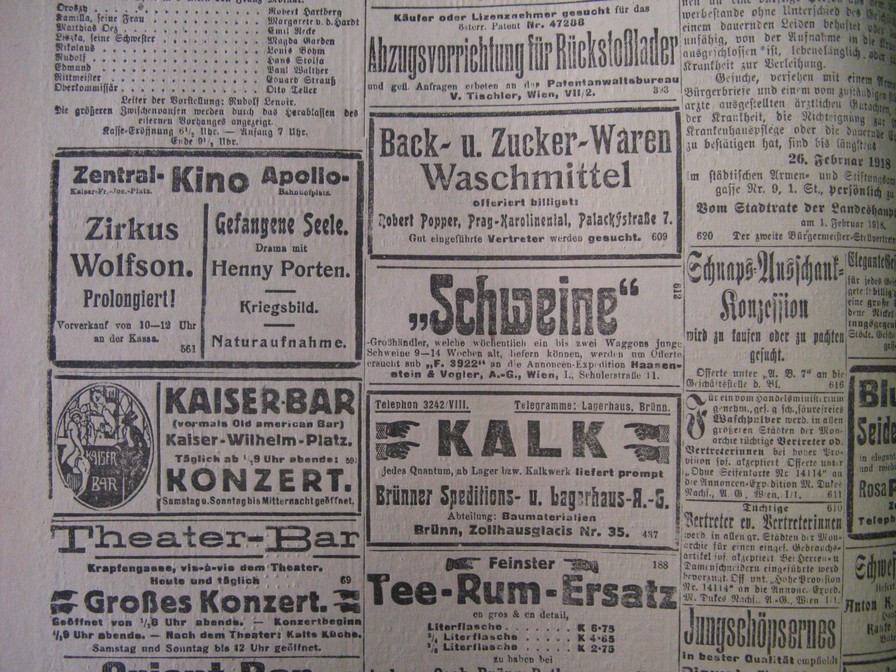 | Cinema | Tagesbote aus Mähren und Schlesien | 1918-02-05 | 100 | |