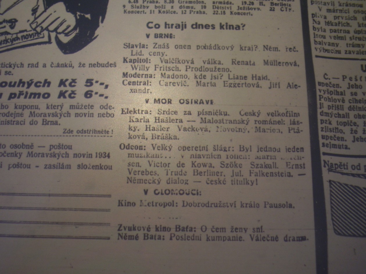 | Programme publishing date | 1934-01-05: Moravské noviny | 1934-01-05 | 4 | 100 |