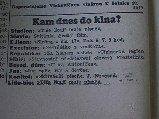 | Cinema | Moravské slovo | 1934-01-13 | 9 | 100 |