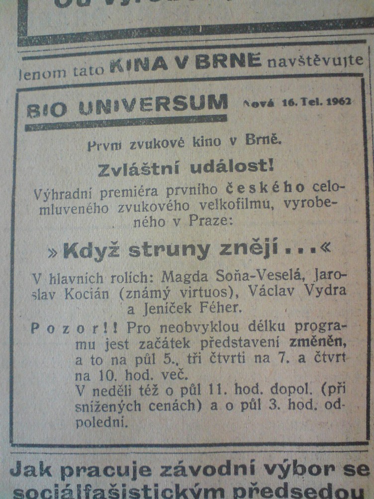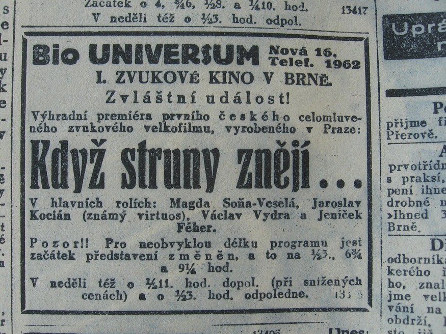 | Numbers | Když struny znějí… / Wenn die Geigen klingen…: Lidové noviny | 1930-10-10 | 513 | 100 |