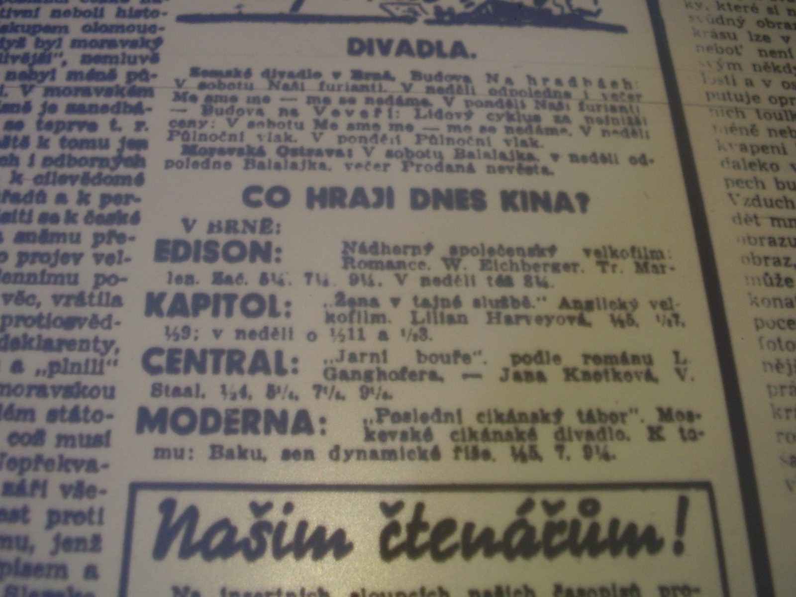 | Cinema | Moravské slovo | 1938-05-26 | 123 | 100 |