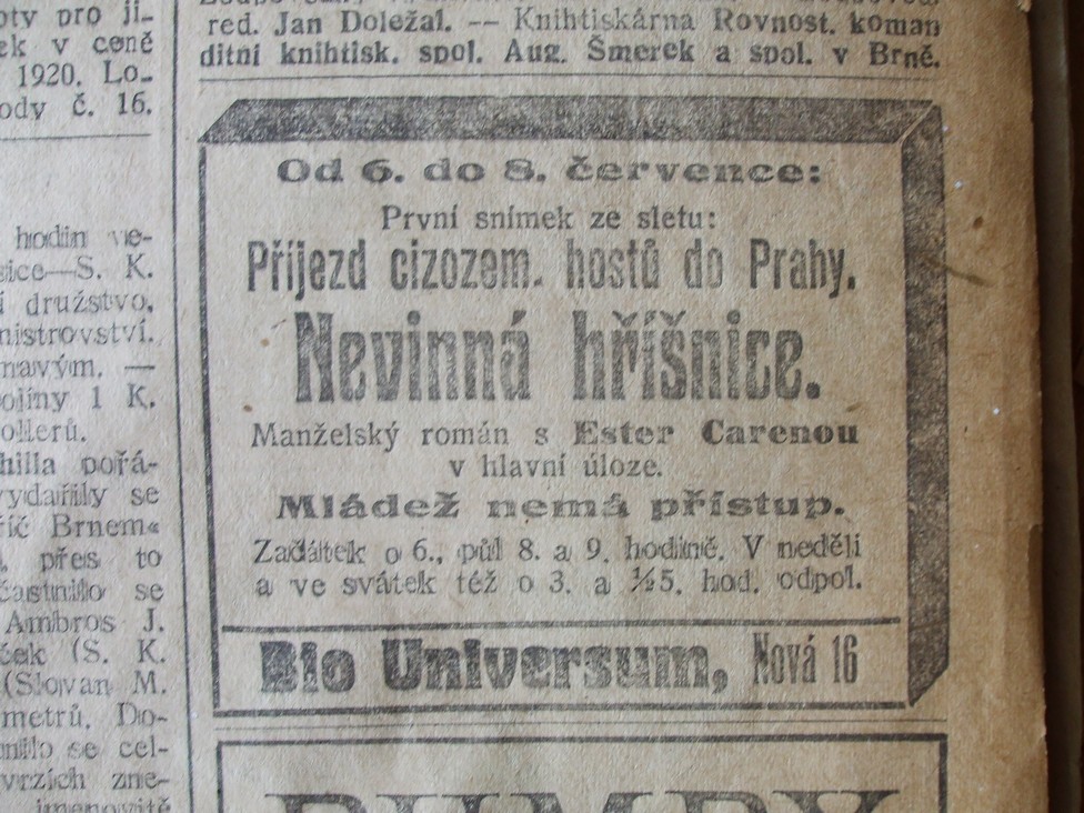 | Numbers | Nevinná hříšnice: Lidové noviny | 1920-07-06 | 329 | 100 |