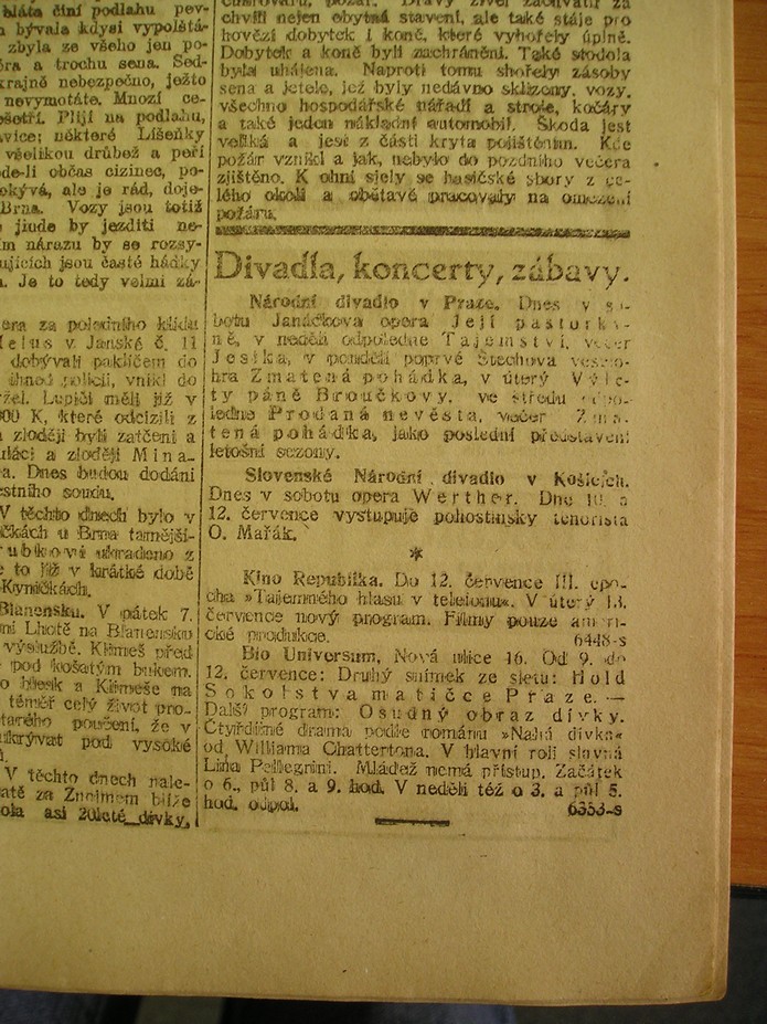 | Audience | Lidové noviny | 1920-07-09 | 334 | 100 |
