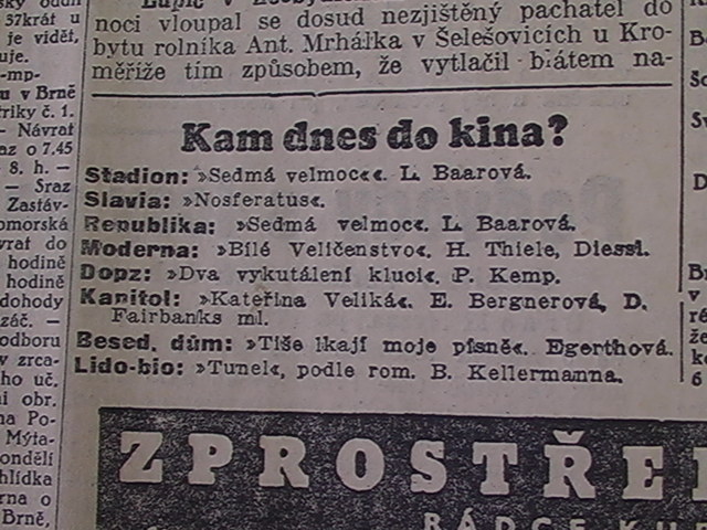| Cinema | Moravské slovo | 1934-03-16 | 53 | 100 |