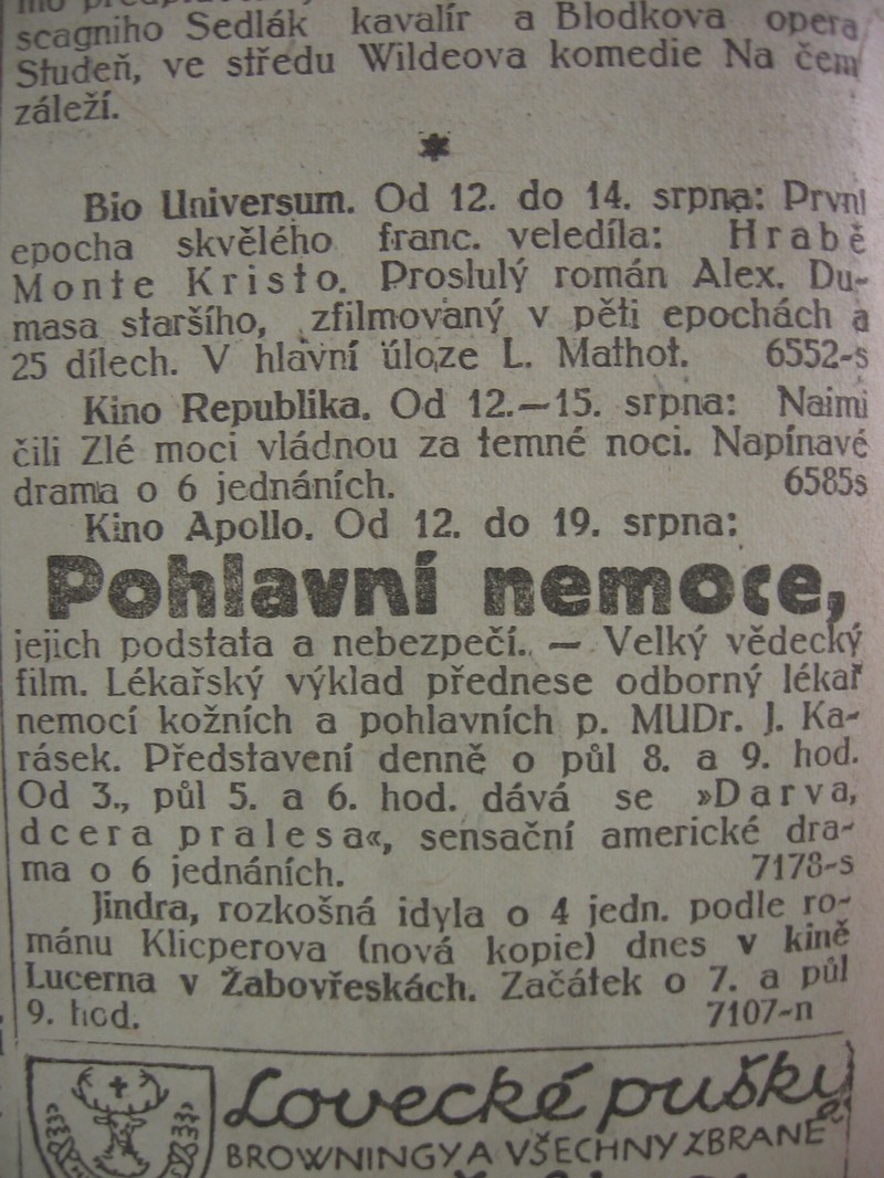 | Cinema | Lidové noviny | 1921-08-14 | 405 | 100 |