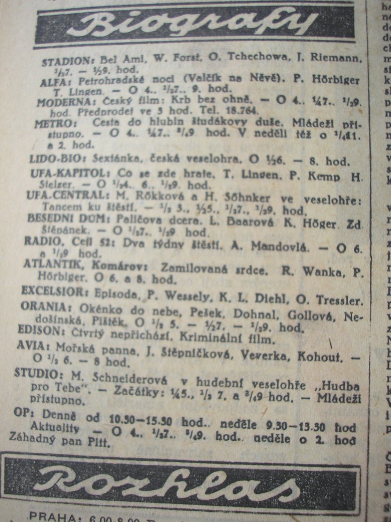 | Cinema | Moravské slovo | 1941-08-12 | 188 | 100 |
