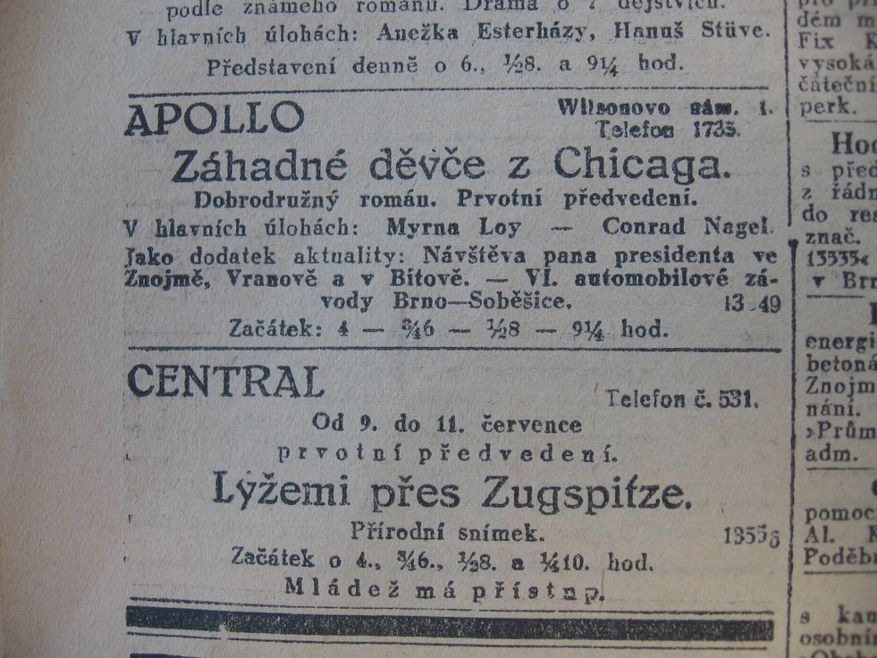| Audience | Lidové noviny | 1929-07-09 | 341 | 100 |