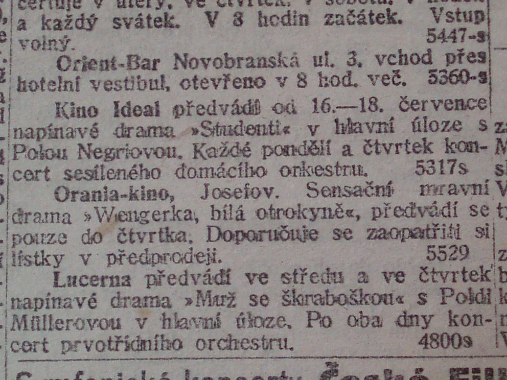 | Cinema | Lidové noviny | 1918-07-16 | 192 | 100 |