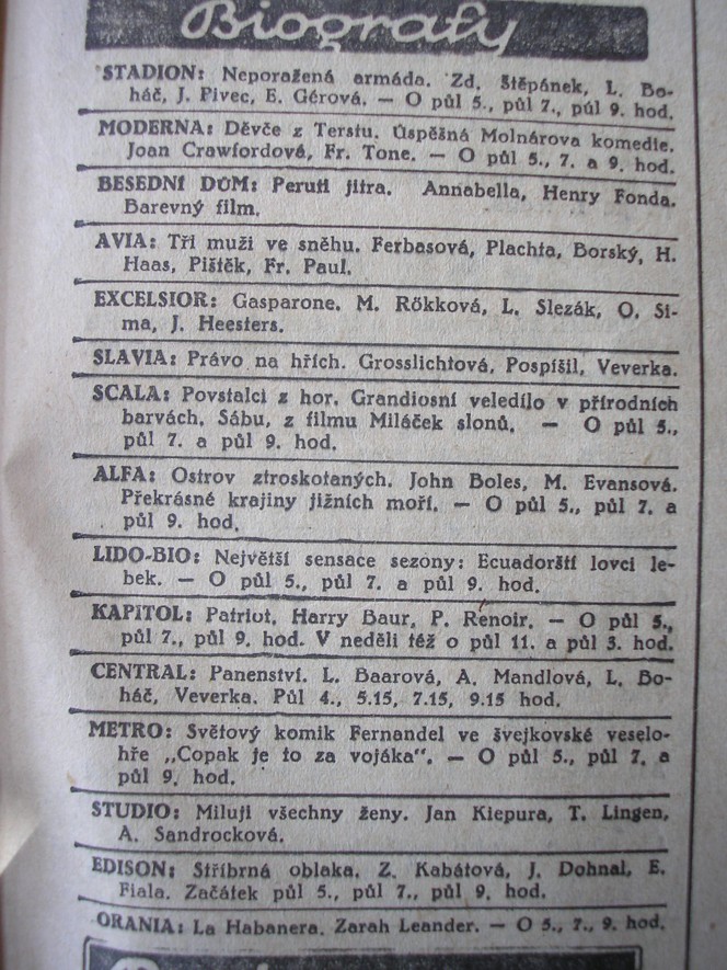 | Cinema | Moravské slovo | 1938-11-25 | 278 | 100 |