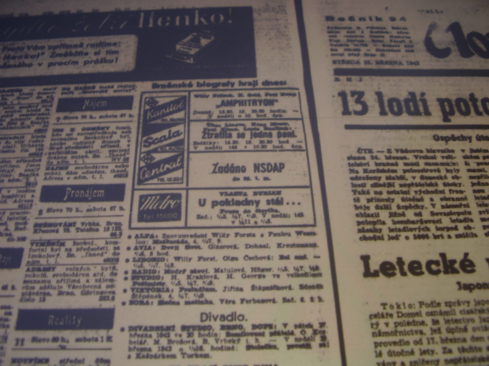| Cinema | Moravské slovo | 1942-03-24 | 70 | 100 |