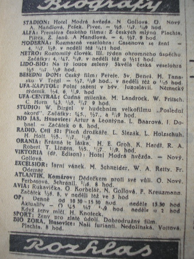 | Cinema | Moravské slovo | 1941-09-16 | 218 | 100 |